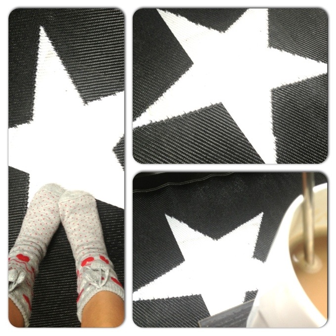 Just nu sitter jag på balkongen å dricker lite kaffe, å vi har fått en jätte fin matta av Alex syster Liv 🙂 tackar den passar perfekt här tihi 😉