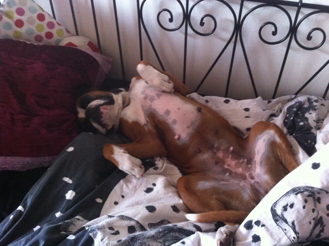 Nejdå min vovve tar inte alls upp hela sängen… Inatt vaknade jag faktiskt i fotänden och Tindra låg på min kudde, haha ombytta roller eller vad?!