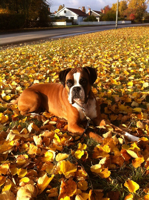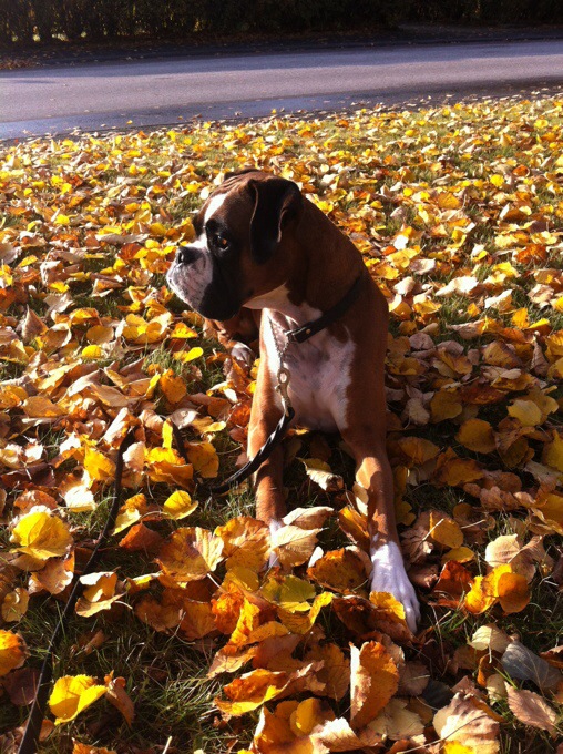 Efter praktiken gick jag en jättemysig höstpromenad med Tindra, är verkligen färgglada löv överallt nu. Första hundpromenaden på två veckor var riktigt härlig och Tindra skötte sig helt perfekt! Stolt matte! 😀 efter en timmes promenad stack jag hemma och duschade för att sedan gå ännu en promenad men den här gången med Carl och hans hund Luna. Luna gillar inte Tindra och morrar en massa men jag mutade henne med massa hundgodis haha. Sen gick vi hem till Carl en stund och åt flingor med mjölk. Carl tränar massa och sen äter han flingor efteråt?? Vilken logik den killen har asså… suck.