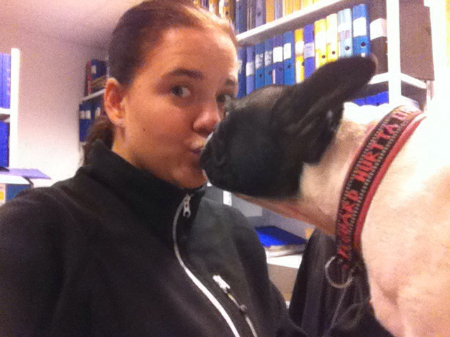 Helt klart den sämsta dagen på länge. Imorse var jag på sjukt dåligt humör och för att göra det värre så var det mörkt, kallt och ösregn när jag cyklade till praktiken, kan lova att jag var långt ifrån glad då. Resten av dagen har varit dötrist, fanns ingenting att jobba med så har städat en del i verkstaden och suttit på en stol. Vid halv 3 när jag höll på att dö av uttråkning så sa de att jag fick sluta, så nu är jag glad! 😀 Ska strax ut med vovven men bjuder på en mongobild på mig och hunden på praktiken!