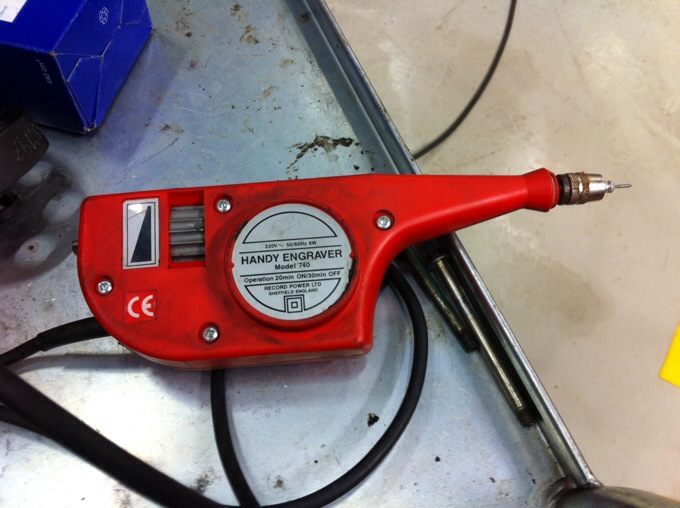 På praktiken idag så fick jag en ”Handy ingraver” som jag skulle använda för att på fri hand gravera in siffror på några saker. Alla som känner mig vet att mina händer skakar en gnutta så för att t.ex inte skriva skakigt så trycker jag hårt med pennan. Men denna kunde jag inte trycka hårt så istället blev det väldigt skakigt… Han jag jobbade med sa att det blev bra ”man ser ju vad det står men du borde nog inte bli tatuerare haha” tror han har ganska rätt i det haha. 😉 I slutet av dagen lyckades jag riva upp ett sår på några centimeter på min höft. Bra jobbat Ulrika. Gjorde inte alls ont. Klantskalle.