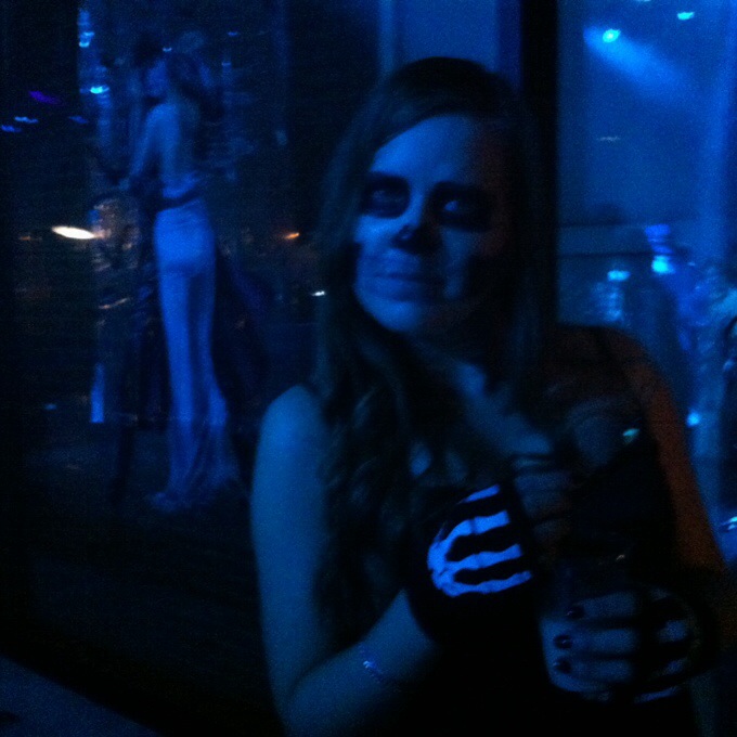 När vi kom hem inatt så istället för att bara gå och lägga sig så duschade vi faktiskt. Berodde dels på skelettsminkningen och dels på att någon hällde öl på hela min rygg (euuuuuw). Riktigt skönt att vakna upp och vara fräsch i alla fall. 😀