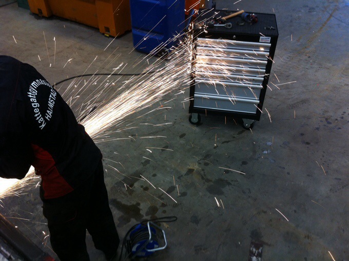Jag och Markus, i min klass, fortsätter jobba med projektet och att demontera ett gammal projekt för att få delar. Så idag har vi i princip bara använt oss av verktyget vinkelslip för att ta bort fastsvetsade delar. Ganska kul men efter ett tag blir den rätt tung, i alla fall om man är svag som jag haha. Gnistorna från vinkelslipen är ganska ofarliga men får man dem i hårbottnen eller innanför tröjan gör det sjuuuuukt ont. Jag talar av erfarenhet, aj.