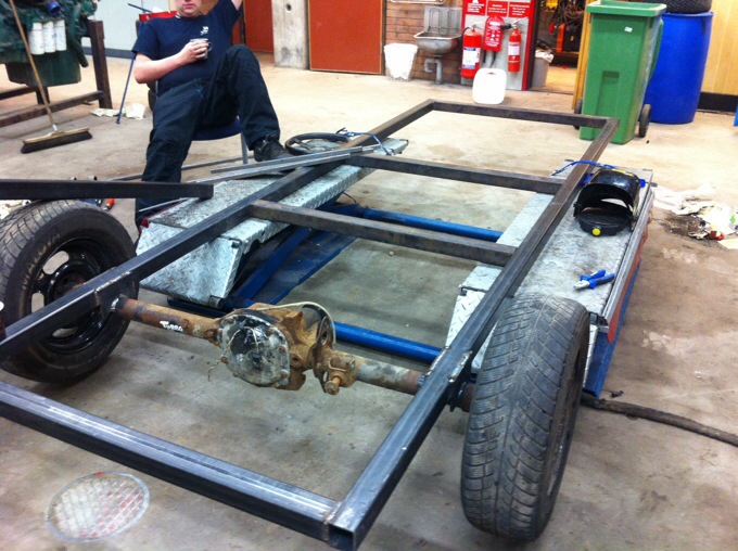 Sitter i skolan nu och äntligen har vi kommit någonvart med vårt projektarbete! Medan jag var sjuk så har de andra jobbat en del så nu har vi en grund. Idag har vi bl.a satt dit bakaxeln och efter rasten ska vi fortsätta med själva skelettet till bilen. Ifall någon undrar så ska det bli en militärbil med en kanon, inspirationen kommer från en pansarterrängbil. 😀