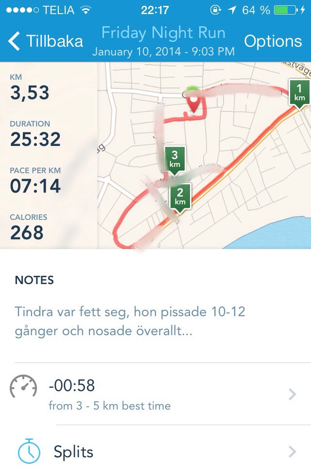 Kompenserade istället med en springtur och tränade sen ben/rumpa med hjälp av en jättebra träningsapp. 😀 Tindra var dock fett seg när vi sprang, hon stannade och pissade sjuuuukt många gånger och en gång satte hon sig ner för hon ville inte springa åt det håll jag ville haha. Söt men jobbig är hon! Hade velat springa lite längre och snabbare men en liten springtur är självklart bättre än ingen alls! 😉 Så kanske jag lämnar vovven hemma nästa gång haha…