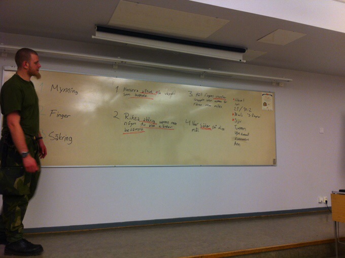 Kvällen har bestått av en lektion i säkerhet med vapen och vid skjutbanan och sen avslutade vi med ett träningspass.