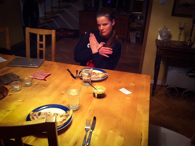 Jag och Sofia har en lugn lördagskväll då vi är hemma själva. För att slippa laga mat (nejdå vi är inte alls lata) var vi nyss på ica och köpte pizza, goooood middag! Vi bojkottar melodifestivalen totalt och kollar på lite serier istället vilket gör detta till en bra lördagskväll! 😀