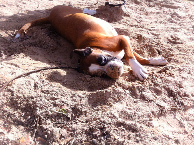 Här är några fler bilder från promenaden i förmiddags, ibland undrar man ju vad ens hund håller på med haha. 😉 Hon försökte antagligen kyla ner sig då hon var trött efter att ha lekt med valpen.