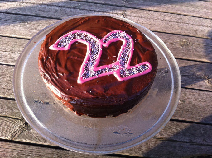 Min syster Helena fyller år på torsdag men då hon bor i Göteborg ska vi fira henne idag istället. Så jag har tillbringat en stund av eftermiddagen med att baka en tårta. Om jag får säga det själv så ser den väldigt god ut, vad tycker n? 😉
