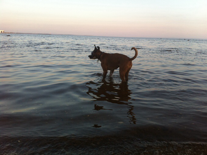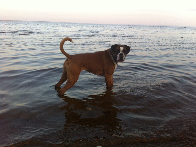 Efter middagen stack jag och Helena (storasyster) ut på en promenad med hunden. Trots att solen höll på att gå ner så var det fortfarande varmt ute och jag kunde gå i bara shorts. 😀 Vi gick dessutom vid havet så nu längtar jag efter fler sommardagar vid stranden och att att kunna gå ner för att grilla-fett mysigt!