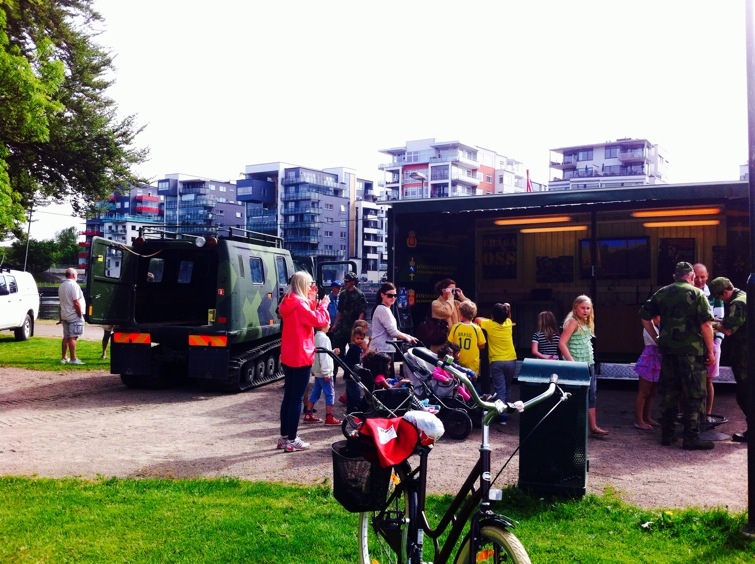 Jag är nu hemma efter en 10-timmars arbetsdag i uniform, gissa om jag är trött haha? 😉 Men har varit en hyfsat rolig dag, mycket folk och många som var intresserade av vår rekryterings-container. Vi hade dessutom två bandvagnar som folk kunde åka med i och jag kan lova att dom fick köra många rundor haha. 😀