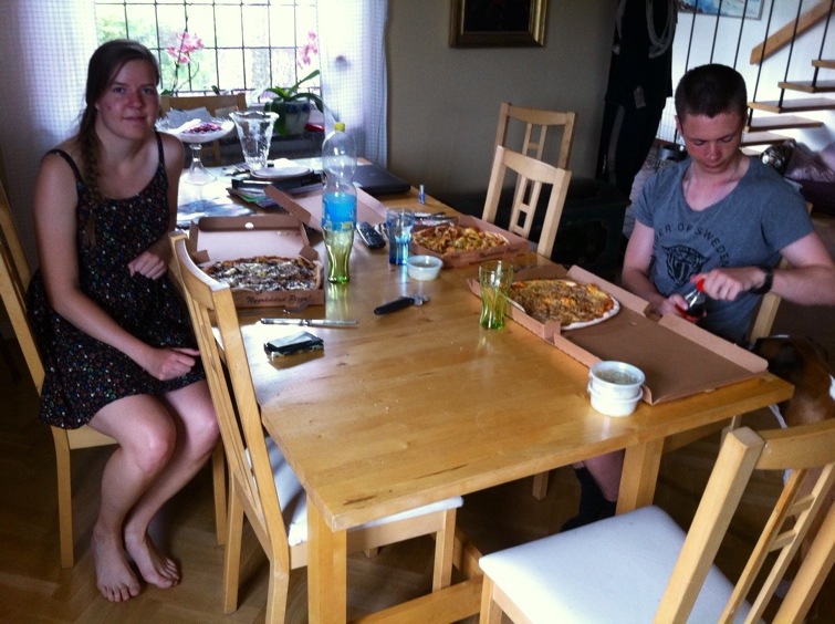 Till middag orkade vi inte laga mat så Simon, jag och Helena åkte och köpte pizza, det var ett beslut vi inte ångrade haha. 😉