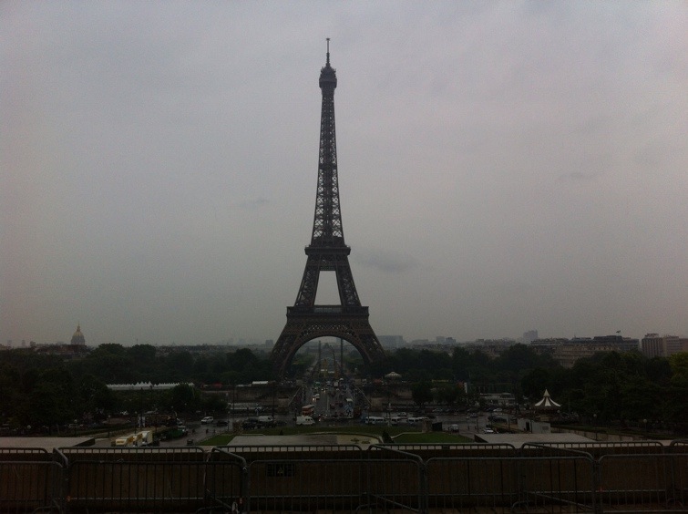 Sedan promenerade vi vidare (i regnet) till Eiffeltornet! Trots att jag varit där 2 gånger innan var det fortfarande häftigt att se det och trots dåligt väder kunde vi se en bra bit ifrån toppen! 😀 Kul vara där med Simon denna gången också!
