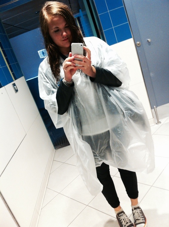 Det 1:a vi gjorde blev därför att köpa en varsin ultra-sexig-regnponcho och detta var nog ett av mitt livs bästa köp! 😉