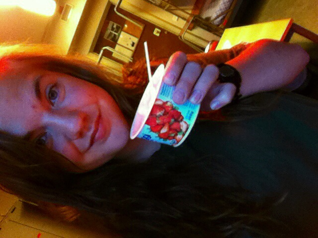 Har helt glömt av att ta några bilder idag så jag bjuder på en selfie av dagens höjdpunkt -yoghurten vi får till kvällsfika varje dag!