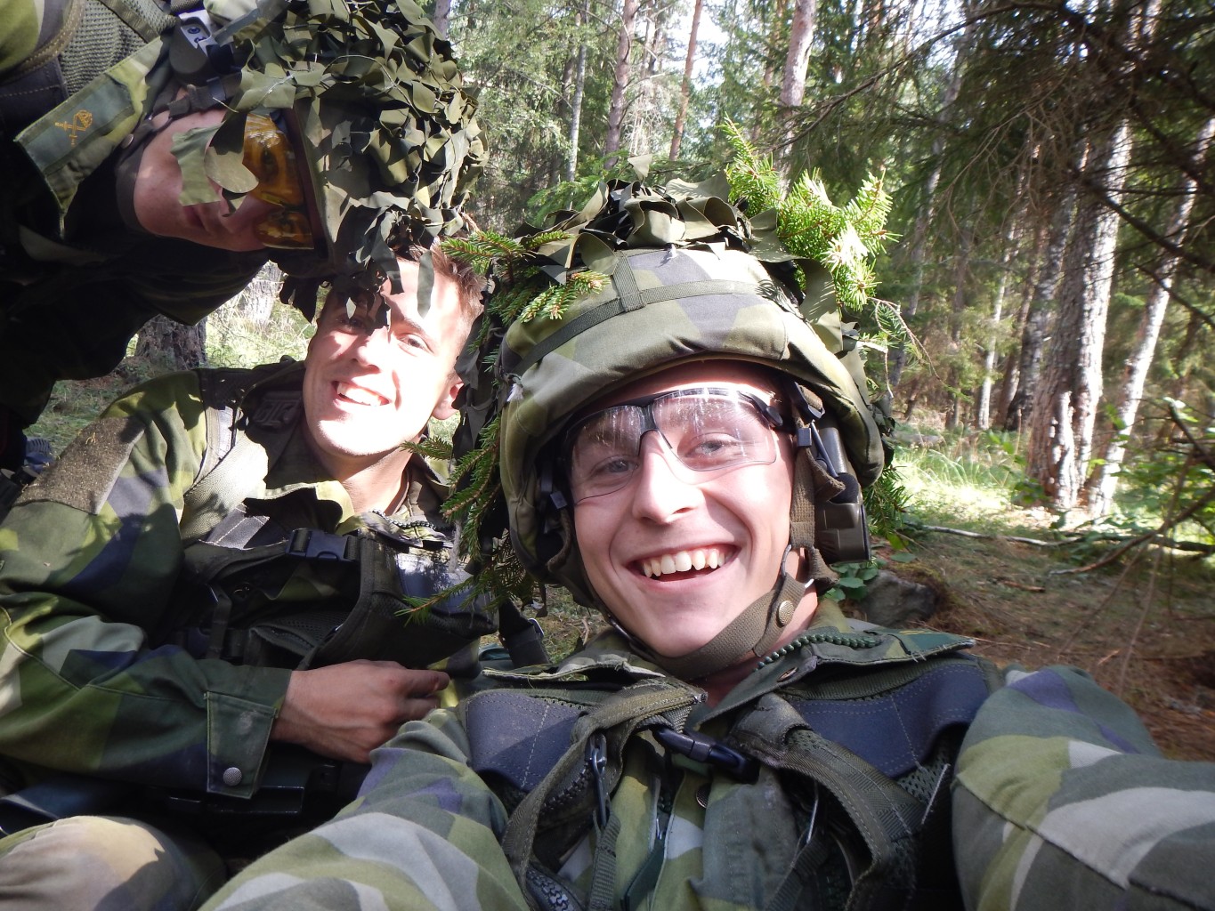 Sedan var det en station där man övade på att sätta på en tourniquet på sig själv på under 30 sekunder, vilket är tidskravet. En viktig men smärtsam station haha… Sedan var det en station där man skulle sitta och öva muntligt på LCABCDE och MIST med hjälp av två planscher. Den sista stationen bestod av en skarpskjutning stridsparsvis där två måltavlor hoppar upp och som man sedan bekämpar samtidigt som man utför trestegsprincipen (stående, knästående, liggande). När moment var slut och man gjort patron ur fick vi sedan sätta en tourniquet på oss själva på under 30 sekunder. Även på detta blev jag godkänd (efter ett misslyckat 1:a försök haha).