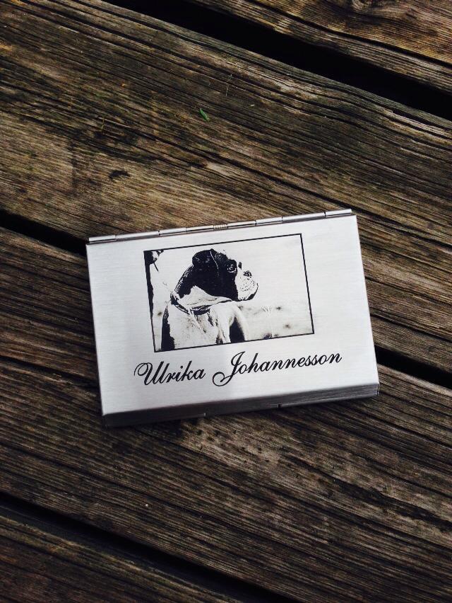 Kolla vad jag fick hemskickat igår, visst är den fin?! Det är en korthållare från Gravyrbutiken.se med min älskade lilla vovve på! 😀