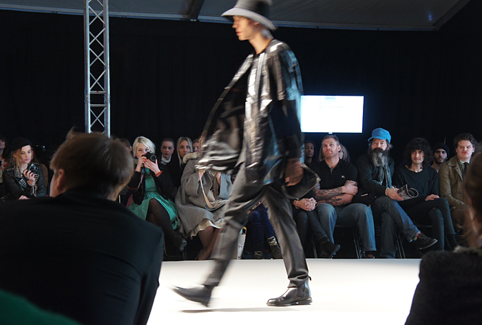 Nu på eftermiddagen gjorde jag och Daniel en blixtvisit på modeveckan. Stilinspirationen var mördaren i filmen I Know What You Did Last Summer. Det är i alla fall min teori.