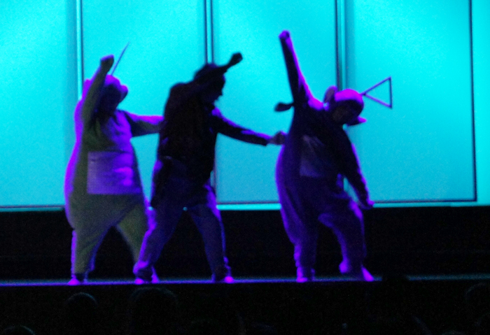 Showen var ganska spretig; vissa sketcher var hysteriskt roliga medan andra var nästan pinsamt dåliga. Men vi hade helt klart en väldigt rolig kväll. Bäst var sångnumren, som när ”Eric Saade” dansade med teletubbies (ovan) eller när ”Eric Amarillo” försökte tigga till sig ett ligg.