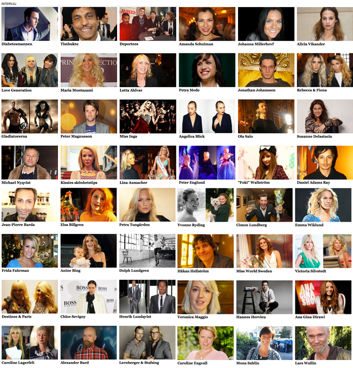 Jag har ägnat en dryg timme åt att sortera och pyssla med vår intervjusida. Ni har väl inte missat att vi har en samlingssida för alla intervjuer vi gör? Där kan ni läsa om de personer jag pratat med de senaste månaderna, såsom Alicia Vikander, Amanda Schulman, Jonathan Johansson, Rebecca & Fiona, Ola Salo, Daniel Adams Ray, Elsa Billgren, Anine Bing, Håkan Hellström, Cecilia Blankens, Veronica Maggio, Lars Wallin med flera.
