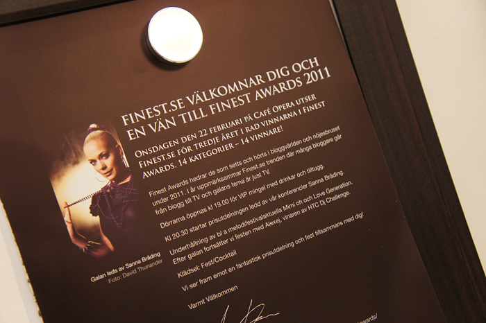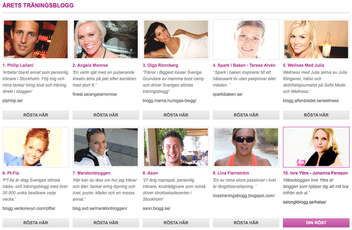 Nästa onsdag är det dags för Finest Awards, där min fina vän Johanna, som jag var och lunchade med i dag, är nominerad som Årets träningsblogg.