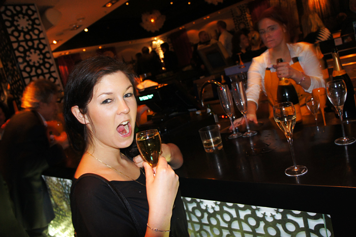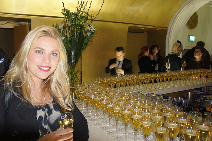 Hög klass på festen, med livepianomusik, rödbetssallad och chokladpraliner. Och champagne. Så mycket champagne. Servitriserna gick runt med stora magnumflaskor med Veuve Cliquot och fyllde på ens glas så fort man druckit upp halva. Farligt, farligt. Tur att det är fredag i dag, med andra ord.