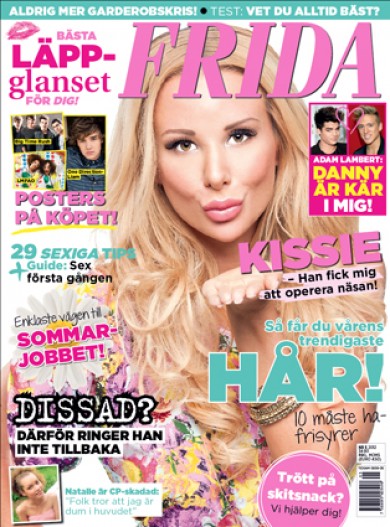 Såg precis FRIDA-omslaget på Alexandra alias Kissie och blev positivt överraskad. Vilken fin bild! Även om den säkert är enormt retuscherad. Säga vad man vill om Kissie, hennes utseende och hennes blogg, men det enda jag sett av att träffa henne var och varannan vecka på redaktionen (och att intervjua henne till min bok Kändisjakten) är en supergullig ung tjej. Eller så har jag blivit blödig av att ligga isolerad hemma i en vecka.