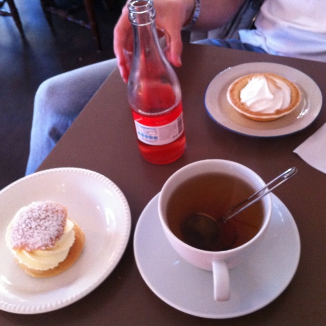 Martin berättade att han aldrig brukar beställa det han allra helst vill ha på konditori, så jag utmanade honom att ta just det. Det blev citronmarängpaj. Jag ville ha en kanelbulle, men de var slut. Så det blev säsongens förmodligen sista semla.