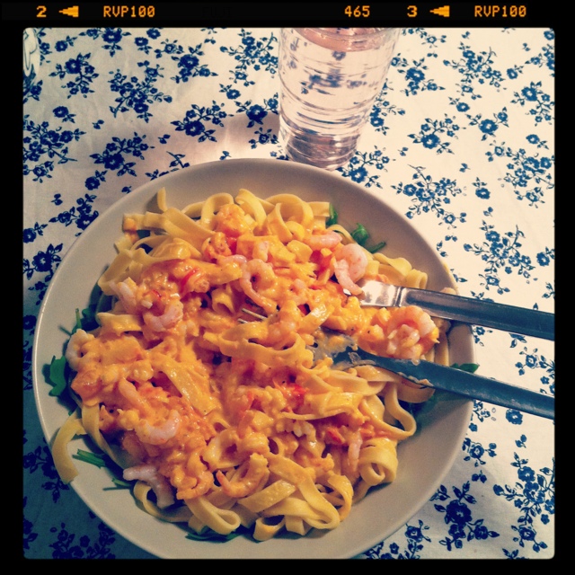 Åkte hem till Lois efter jobbet och blev bjuden på en delikat räkpasta som avnjöts tillsammans med ett flertal glas Fun Light som smakade somrigt isglassig.