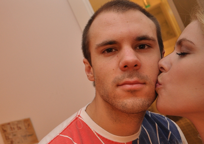 Jag hoppas Martin är mer entusiastisk för pussen än han ser ut på bilden 🙂