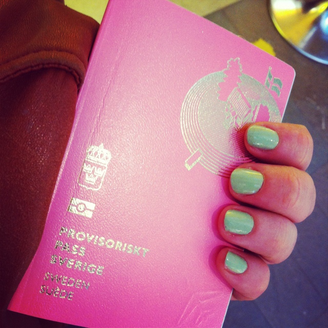 Inget ont som inte har något gott med sig: det snygga, rosa provisoriska passet matchar ju perfekt med mitt vårgröna Essielack!