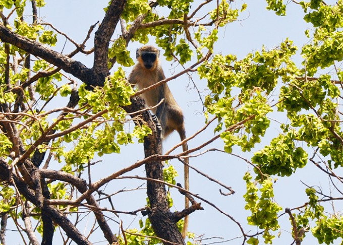 Vi skulle nämligen på safari till Senegal och började med att ta färjan över Gambiafloden. Den var försenad, så vi stod länge och såg den närma sig i fjärran. Ser ni den?