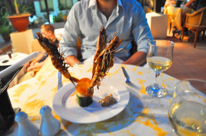 Martin åt en läskig förrätt med räkor som man skulle äta hela, med skal och allt.