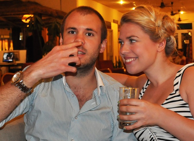 Efter middagen hängde vi lite och drack drinkar med några skånska tjejer, här är Stina och Johanna.