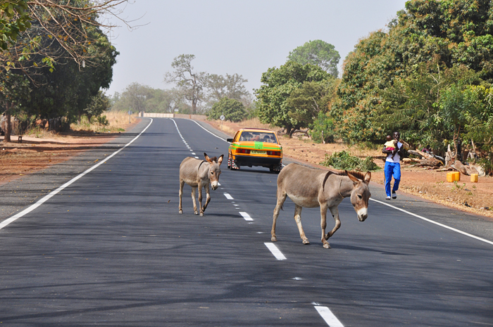 Väl på andra sidan körde vi över gränsen till Senegal. Vi och några åsnor.