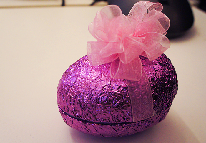 …måste vara det som stod på mitt skrivbord när jag kom tillbaka från sjukfrånvaron och påskledigheten. Fylld med gourmetchoklad. Kvalitet före kvantitet. Tack, cheferna!