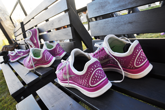 Skorna! Nike Free, väger ingenting och har inga sömmar, allt för att det ska kännas (nästan) som att springa barfota. Det gäller nog att inte springa på ett fuktigt underlag dock, de kändes inte särskilt vattentäta.Det tuffa träningspasset för att testa skorna: vi gick runt, runt, runt i en ring. Nu längtar jag bara tills jag helt slutat hosta, så att jag kan ge mig ut på ett löppass.