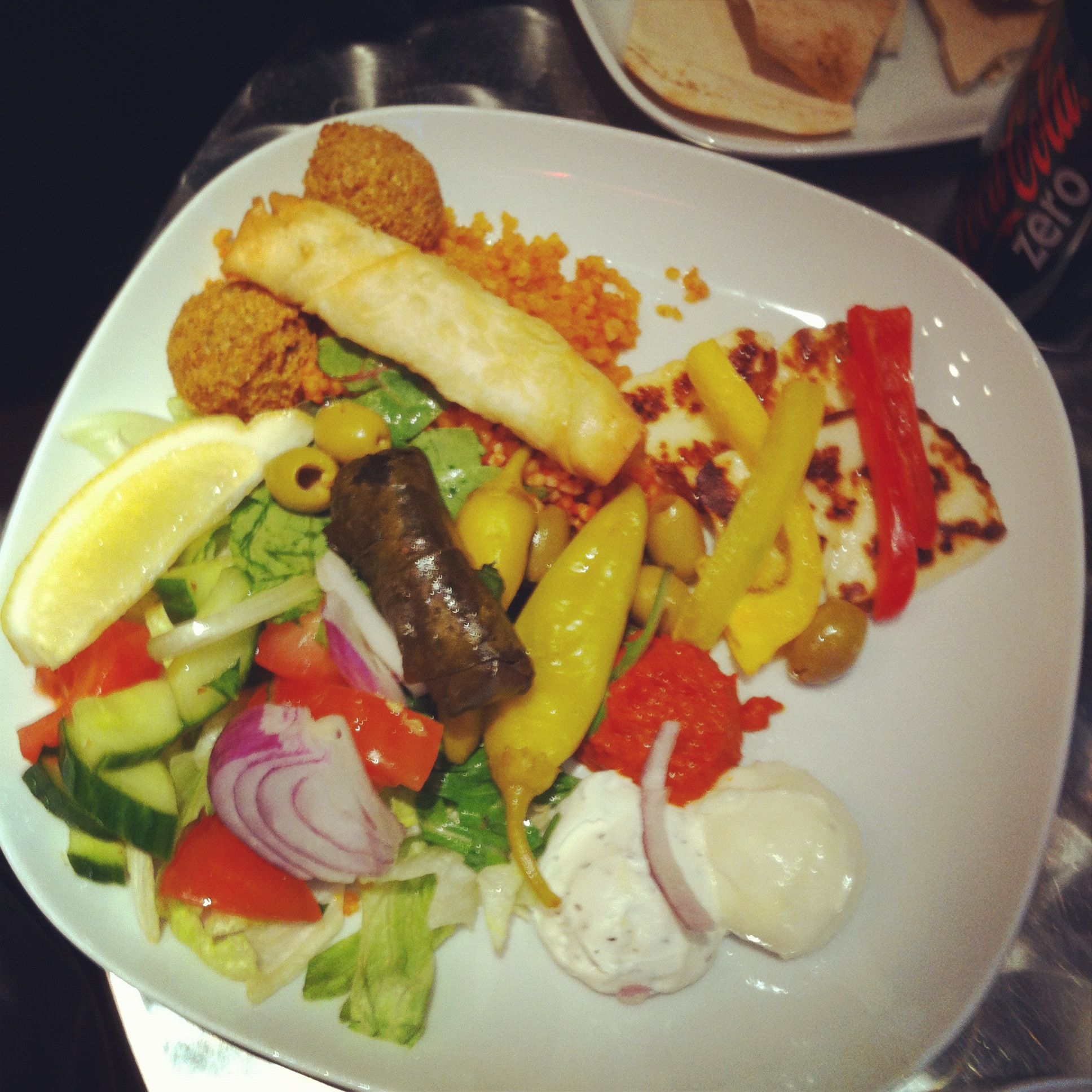 Haha, jag la själv inte märke till det förrän senare när jag tittade på bilden. Den var helt okej, men jag saknade hummus!