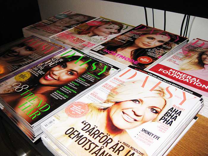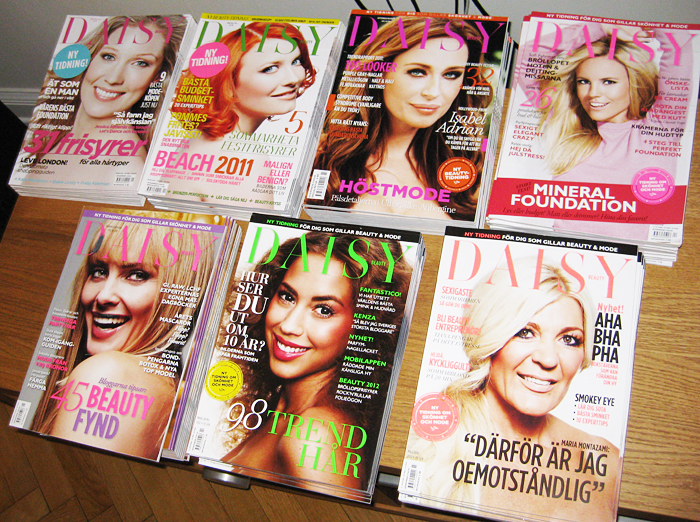 I går var jag hemma hos Kicki och Sam på ett litet Daisy Beauty-mingel med chilimiddag, vin och smygläsning.Jag passade på att gosa en massa med deras ljuvliga hund Barack. Träffade också en hel del trevliga tvåbenta varelser, till exempel Dior-Emelie som precis kommit hem från två veckor i Paris där hon hängt med Natalie Portman (”hon är ännu vackrare i verkligheten!”).Sneak peek på kommande omslaget, tidningen längst ner till höger.Jag bondade lite med en fotograf från Los Angeles, som inte riktigt förstod sig på fenomenet Maria Montazami.