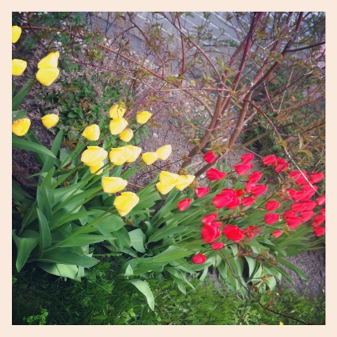 Jag är en typisk måndagshatare, men i dag var det svårt att inte bli på bra humör när man tittade ut genom fönstren. Strålande sol och blå himmel, då är livet lätt att leva. Rabatten utanför vår port är full av knalliga tulpaner just nu – på morgonen är de slutna som ovan, på kvällarna utslagna och oblyga. Känner på mig att det blir en bra dag i dag.