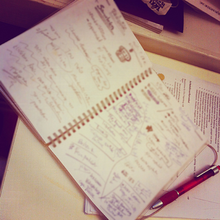 Jag brukar alltid använda de tomma sidorna längst bak i kalendern för att klottra ner mötesanteckningar, intervjufrågor och att-göra-listor. Men nu är alla sidor fulla och jag vet inte riktigt vad jag ska göra; drygt halva året är ju kvar! Visst, jag kan gå runt med ett anteckningsblock i väskan också, men det är så praktiskt att ha två-i-ett. Och nej, jag kommer nog aldrig bli en sådan som har sin kalender och alla anteckningar digitalt, jag behöver liksom få skriva ner saker fysiskt, för hand.