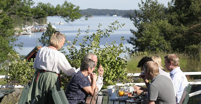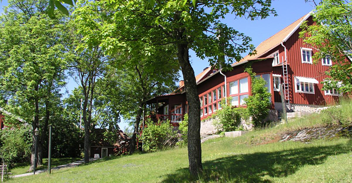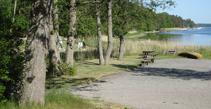 Den ligger precis vid mysiga Skeviken på Värmdö.
