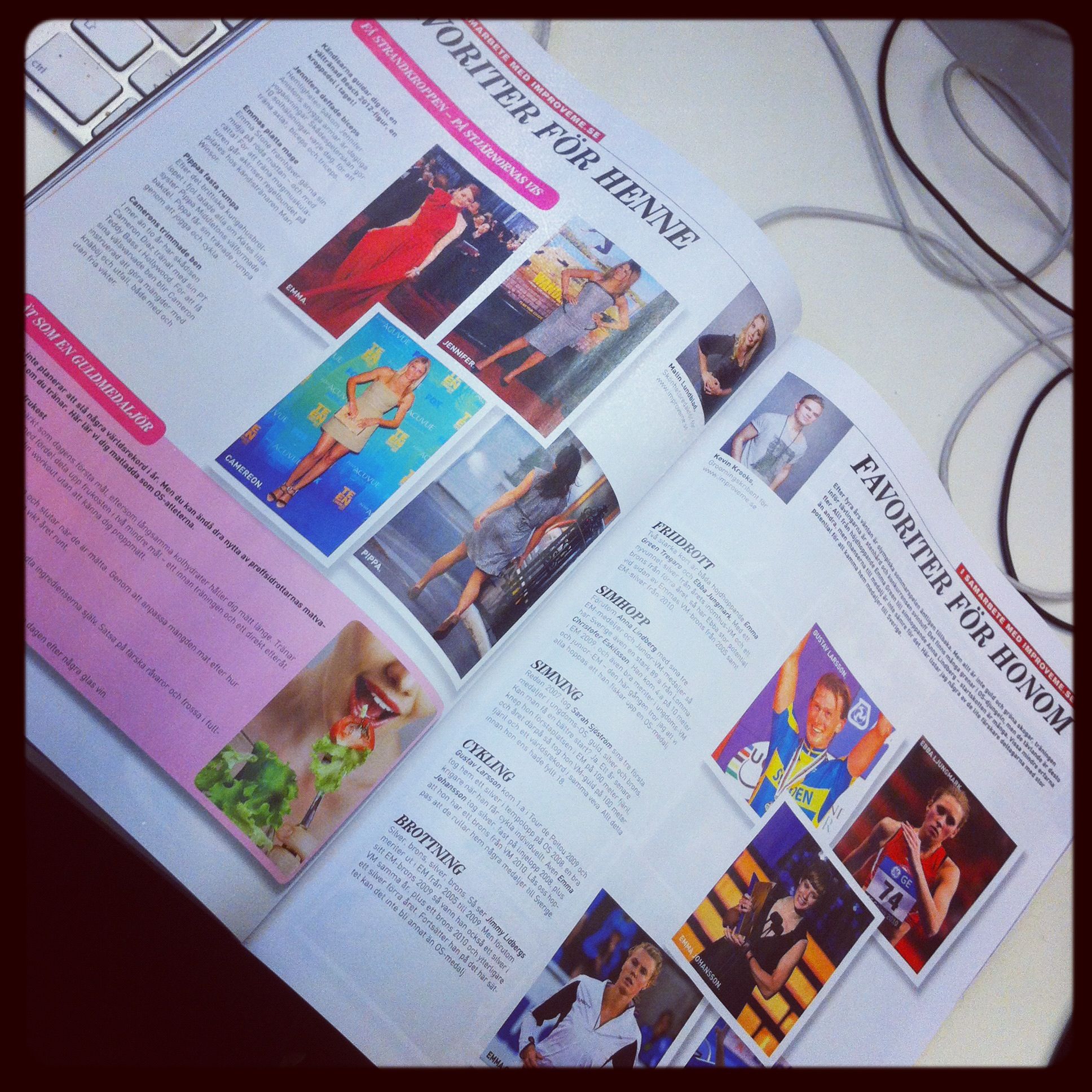 Var och tränade på mitt förra gym Balance på lunchen (hade fått ett prova-på-presentkort i en goodiebag). Är så trött i dag att jag lyckades somna på översta bänken i bastun. Hade hoppats att träningen skulle ge lite energi, men tror att jag får satsa på en god natts sömn ikväll istället. Haffade i alla fall ett ex av nya Sportguiden på gymmet, med mitt och Kevins uppslag.