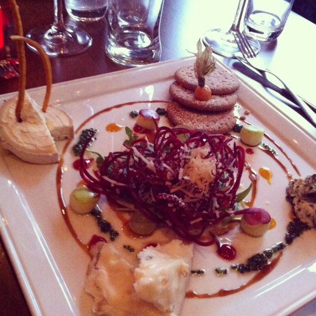 Vi gick till Restaurang Rött på Rörstrandsgatan. God mat, gott vin — och efterrätterna var rena konstverken (se ovan).