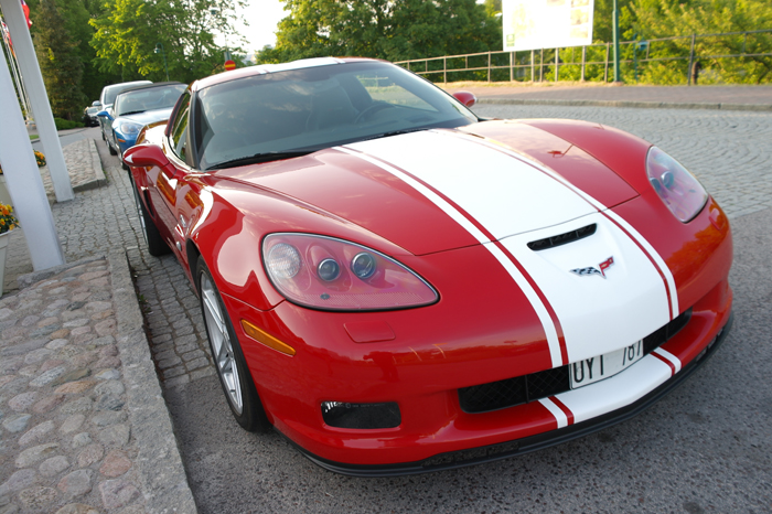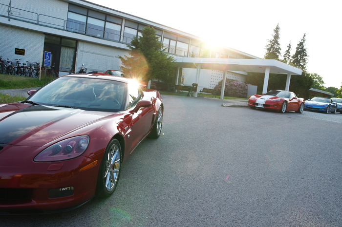 Svenska Corvetteklubben var på besök, så hela parkeringsplatsen var fylld av lyxbilar.