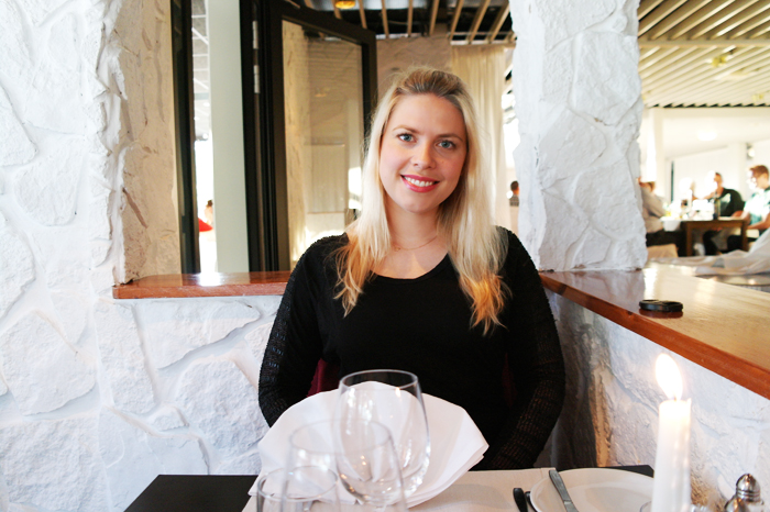 Vi var i spaet till 19-tiden, sedan bytte vi om och begav oss till restaurangen.