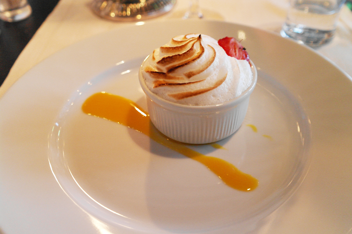 Efterrätten var desto bättre. En citronmousse med marängtäcke och en riktigt syrlig citrussås till.