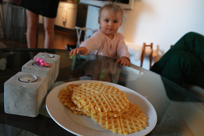 I går kväll var vi på middag hos Anna, Linus och Lily. De bjöd på supersmarrig räk- och mangosallad på soliga balkongen.Lily hade charmen på max som vanligt.Sån här sallad ska jag börja göra hemma!Två söta Dagnellskor.Och Lily har börjat gå — eller snarare, springa! På de flesta bilder är hon bara som ett suddigt moln som flyger förbi.Vi avslutade kvällen med nygräddade våfflor i soffhörnan, sjukt gott.