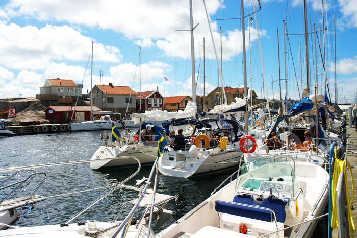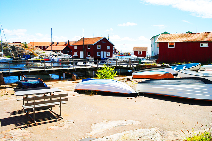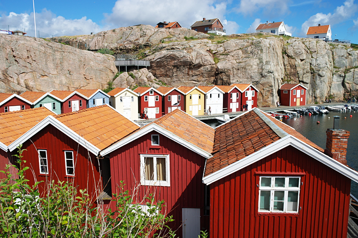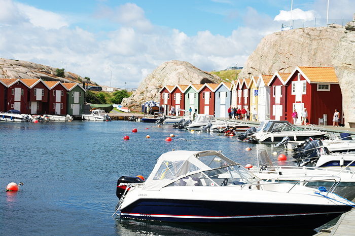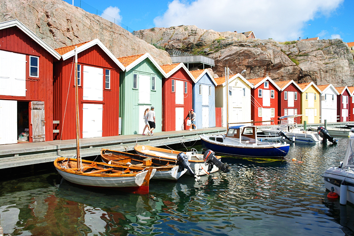 …och bort till de färgglada små husen i slutet av bryggan, som liksom symboliserar hela Smögen.