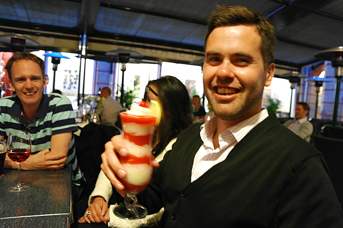 På roadtrippens femte dag vaknade vi upp på Varbergs kurort och insåg att vi hade försovit oss. Frukosten hade slutat ett par minuter tidigare, så vi spurtade ner och som tur var stod den fortfarande framdukad. Tur eftersom det var bästa frukostbuffén på resan, enligt mig (och det vill inte säga lite, för alla frukostbufféerna var sjukt bra!)Efter frukost kilade jag ner till stranden för att kika lite.Något badväder var det tyvärr inte.Däremot var det bra surfväder!Men vi hade inga surfingbrädor, så vi körde ner till Halmstad istället.Vi hittade lä i sanddynerna på Tylösand.En galet blåsig dag var det.Men väldigt vackert!Så efter laxlunch på Hotell Tylösand åkte vi vidare till Malmö, där vi tog en shoppingtur på stan och sedan checkade in på Radisson Blu.Rummet var 42 kvm stort och då var det ändå ett av de minsta rummen på hotellet.Vi slappade lite i dubbelsängen……innan det var dags att duscha och fixa sig inför kvällen i Malmö.Redo!Markus fyllde 30 år, så vi skulle följa med ut på födelsedagsmiddag med honom, hans Kristina och en massa kompisar.Ett 15-tal personer blev vi, som åt italienskt på Vapiano.Och kollade på regnbågen genom fönstret.Jag lekte cocktailservitris.Sen blev det drinkar på en pub i närheten som jag glömt namnet på.Det dök upp mer folk.Och kvällen avslutades med en supergod mojito!